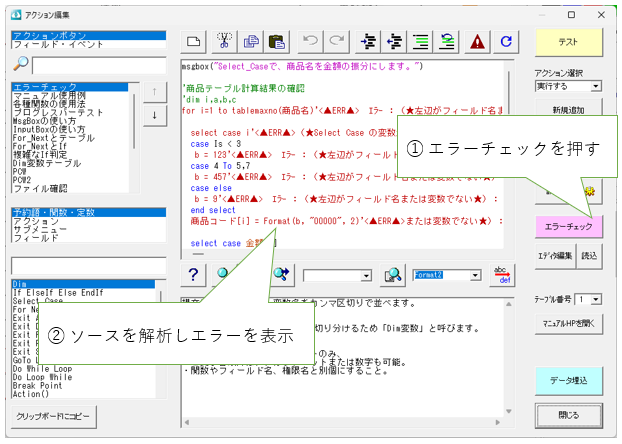 ● 予約語や関数を選択すると、ヘルプに説明が表示される。