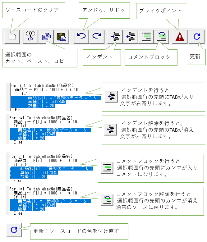 ●ver10から、インデント、コメントブロック、ブレイクポイントなど、新機能を追加