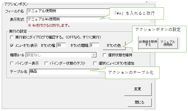 先に、通常のアクションであるアクションボタンに関して、説明します。