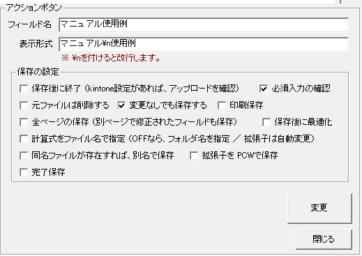 保存するを選択した場合の「設定画面」が、以下の通りです。