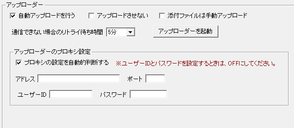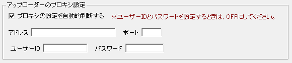 アップローダーを使用するときに、プロキシの設定が必要な場合、ここで設定します。