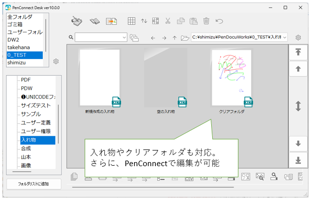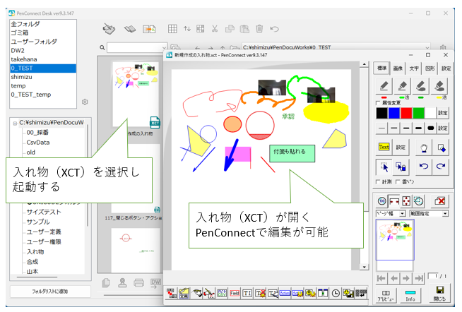 DocuWorks DeskやPenConnect Deskから、PenConnectで入れ物を開き、編集できます。