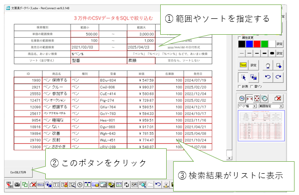 | CSVをSQLで操作する | CSVファイルを、SQLで検索・絞込できる機能を追加 |