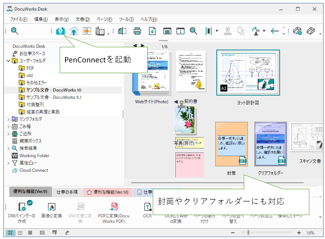 PenConnect Deskで、入れ物に対応。 また、「ばらす」と「束ねる」を高機能化した。 |