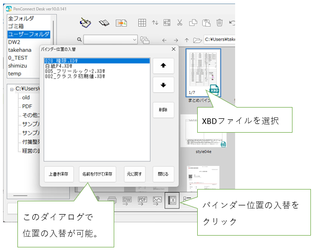| バインダー位置の入替 | PenConnect Deskで、バインダー位置の入替 |