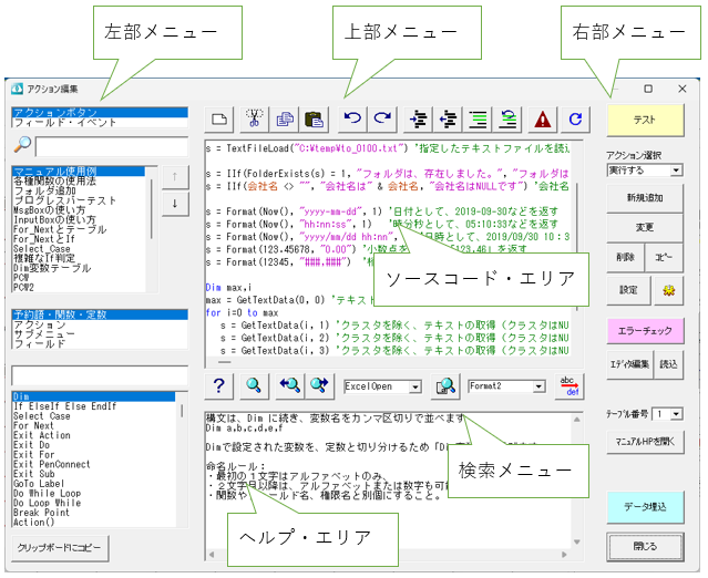● 予約語や関数を選択すると、ヘルプに説明が表示される。