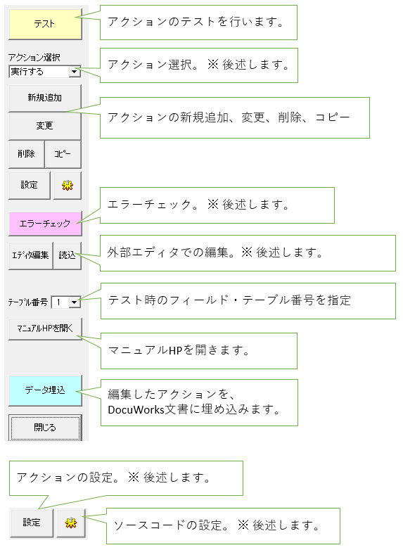 先に、通常のアクションであるアクションボタンに関して、説明します。