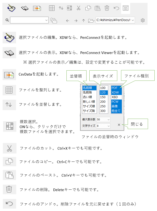 以下の機能は、PenConnectDeskに特有な機能となります。各機能の詳細は後述します。