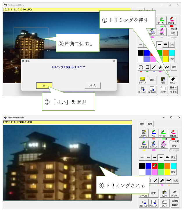 | 画像編集でトリミング | 画像編集でトリミング(画像の一部だけを切り出す)を実現 |